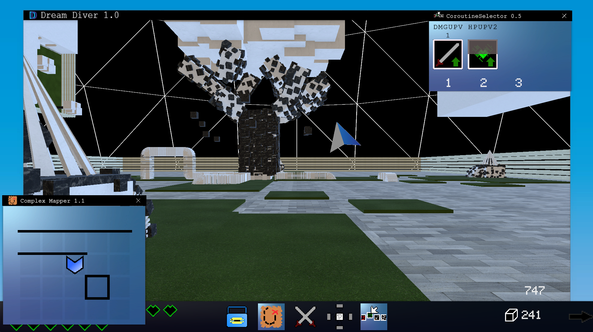 DreamDiver is a first-person, grid-based action game (developed in Unity) that has the player navigating dungeons, fighting enemies with the cursor, and collecting equipment and currency to become stronger.